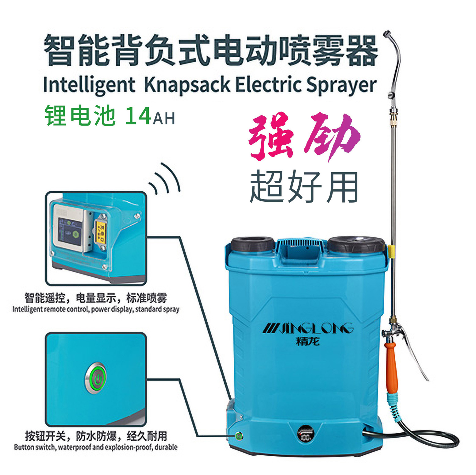 精龙电动喷雾器智能遥控 3WBD-16型 背负式 电动喷雾器 锂电池 14AH